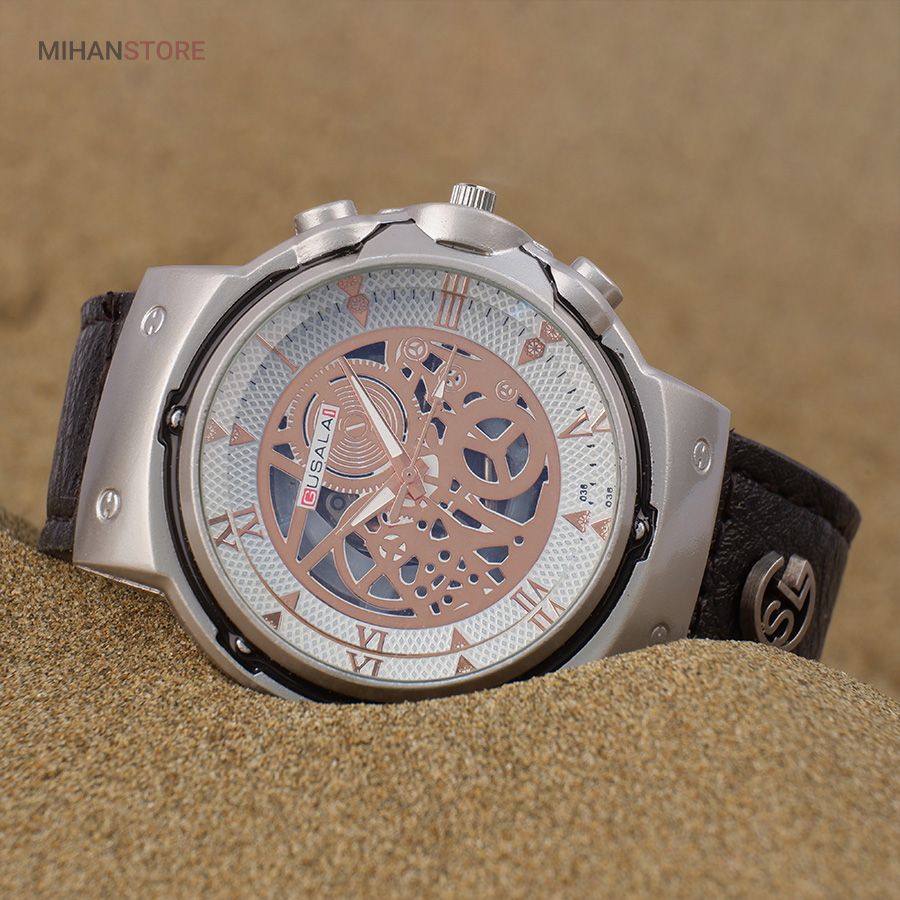 ساعت مچی اسپرت لاکچری GUSALAI بسیار خوش ساخت و با کیفیت تولید شده است، طراحی شیک و خاص این ساعت باعث میشود در هر لباسی بدرخشید. این ساعت قیمت مناسبی داشته و از کیفیت قابل قبولی برخوردار است ضمنا موتور به کار رفته در قلب این ساعتِ زیبا از نوع پِرِسی بوده و باتری آن نیز قابل تعویض است. بند به کار رفته در تولید این ساعت از چرمِ مصنوعیِ با دوام است و زیبایی خاصی دارد. این محصول همراه با جعبه ای شکیل ارائه می شود.