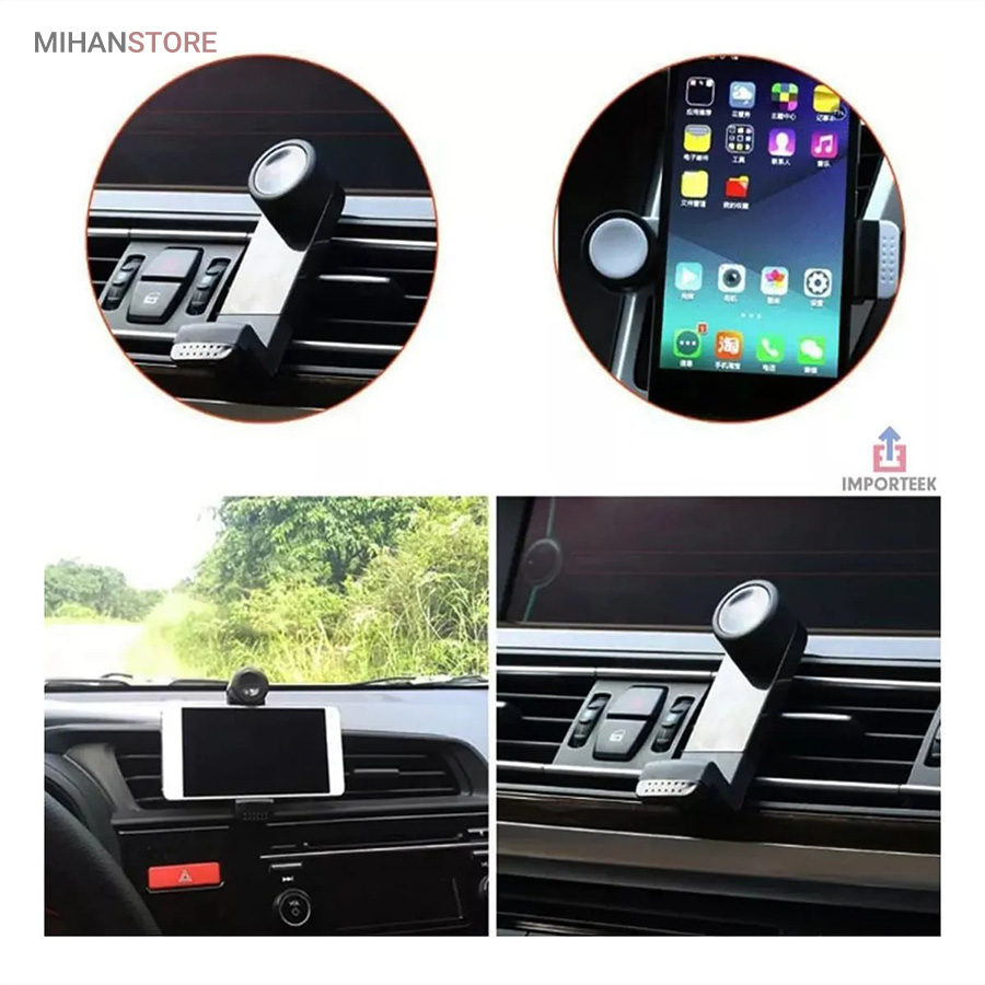 با استفاده از این پایه نگه‌دارنده کوچک، می‌توانید گوشی موبایلتان را روی پره‌های دریچه تهویه هوای داخل خودرو متصل کنید و آن را در مقابل خود داشته باشید. این پایه مکانیزم ساده‌ای دارد و نصب و برداشتن آن‌هم کار سختی نیست. فک‌های نگه‌دارنده آن به‌صورت کشویی از 55 تا 84 میلی‌متر باز می‌شوند و می‌توانند گوشی‌های 3.5 تا 6 اینچی را درون خود نگه‌دارند. پشت این فک‌ها، زبانه‌های پلاستیکی کوچکی تعبیه‌شده‌اند که با اندکی فشار به پره‌های دریچه تهویه داخل خودرو متصل می‌شوند. به کمک همین زبانه‌ها می‌توان از این پایه نگه‌دارنده برای استفاده رومیزی (به‌عنوان استند گوشی) هم استفاده کرد. با خرید و نصب پایه‌های نگه‌دارنده خودرویی، تمرکز بیشتری بر رانندگی خود خواهید داشت.