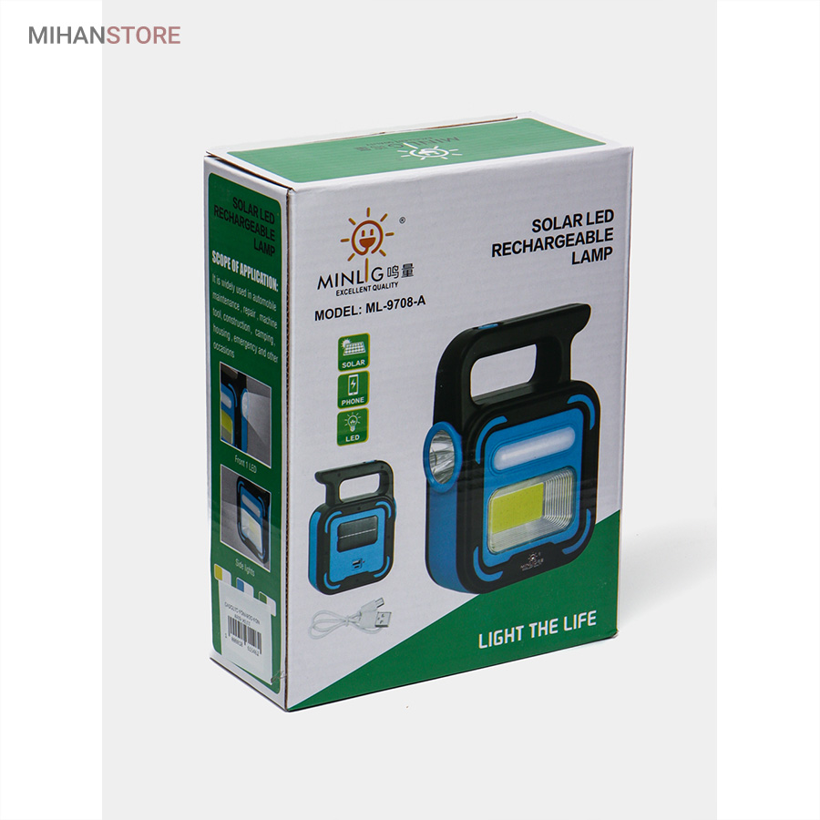 یک وسیله با چندکارایی جالب می باشد. جنس بدنه چراغ کار از ABS و مقاوم در برابر ضربه می باشد. چراغ و پروژکتور اضطراری دارای پاوربانک دارای 4 حالت نوردهی که شامل: چراغ قوه سفید و چراغ قوه آفتابی با  نور زرد و چراغ جانبی قوی COB شش چراغه با نور  قوی و چراغ جانبی کوچک میباشد. چراغ کار چند کاره دارای ویژگی هایی چون: دست گیره، قابلیت شارژ با برق شهری و نور خورشید، و خروجی USB برای شارژ موبایل می باشد.