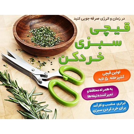 اين قیچی عجيب و غريب شامل 10 تيغه تيز است كه اين امكان را براي شما فراهم مي كند تا سبزيجات، کاهو، پیاز و ... را با سرعت بالا و در تکه های مساوی برش داده و خرد كنيد. جنس دسته به نوعی طراحی شده است که مانع از سر خردن قیچی می شود و همچنین جنس تیغه های آن استیل بوده و فوق العاده با کیفیت می باشد. یکی از مشکلات این قیچی تمیز کردن بین تیغه های آن می باشد که در طراحی جدید این محصول این مشکل هم حل شده است و در کنار قیچی یک قطعه محافظ و تمیز کننده قرار داده شده است که این تمیز کننده با استفاده از شیار هایی که دارد بین تیغه ها قرار می گیرد و سطح تیغه ها را تمیز می کند.
